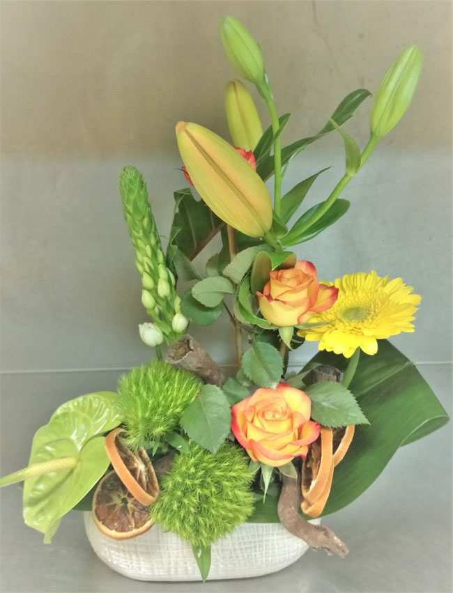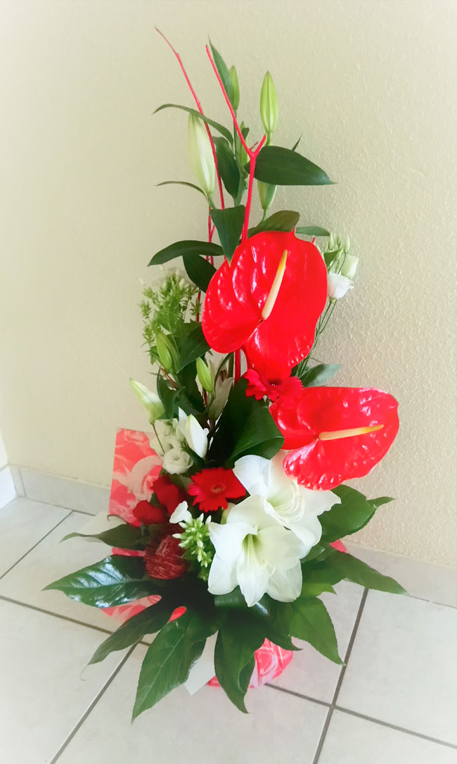 Les visuels des compositions sont non contractuels : c'est-à-dire que les compositions livrées peuvent varier par rapport au visuel présenté, selon la saison, les fleurs et contenants disponibles,... mais l'esprit de la composition sera toujours fidèle au modèle présenté.